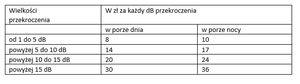 - przekroczenie dopuszczalnych norm hałasu nie jest jeszcze podstawą do naliczenia kar administracyjnych, jest natomiast podstawą do wszczęcia postępowania w sprawie wydania decyzji o dopuszczalnym poziomie hałasu;