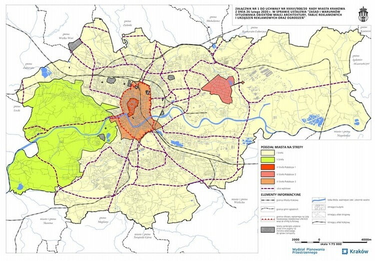 Więcej informacji w przewodniku przygotowanym przez miasto Kraków – uchwała krajobrazowa – tablice reklamowe i urządzenia reklamowe.